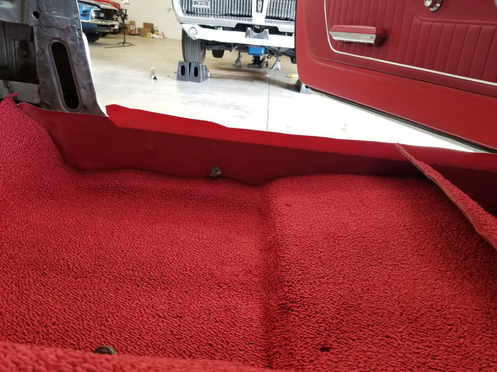 -New premium grade proper 64 1/2 carpet, new pony vinyl mats, installation of proper 64 1/2 correct grain vinyl rocker panel/sill covering-